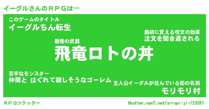 | 伝説のあだ名 | 『封印されし竜騎士イーグル』 |