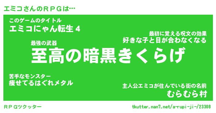 | 男性向けラノベタイトル風あだ名 | 『エミコアートオンライン』 |