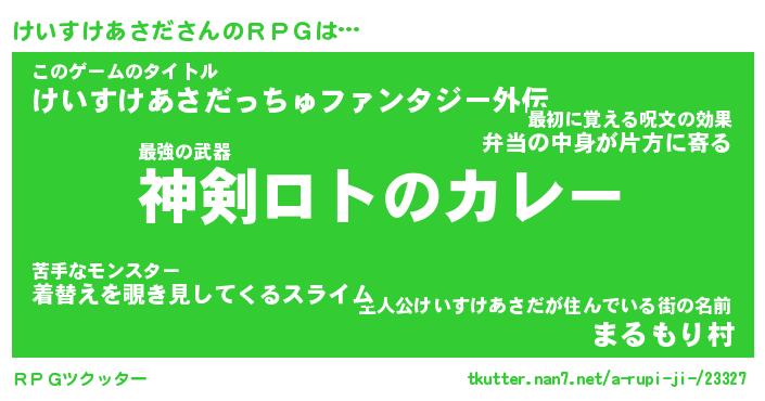 | 男性向けラノベタイトル風あだ名 | 『けいすけあさだの憂鬱』 |