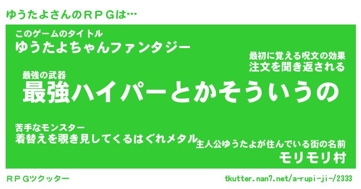 | 胡散臭い通販商品みたいなあだ名 | 『モテモテ間違いなしブレスレット…その名も「ゆうたよ」』 |