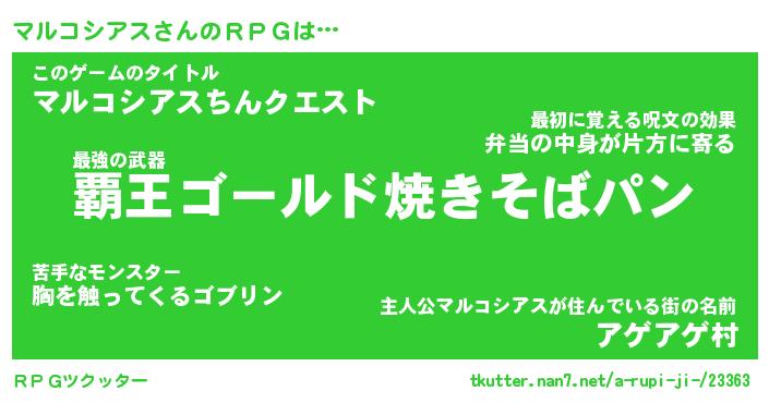 | 伝説のあだ名 | 『封印されしスナイパーマルコシアス』 |