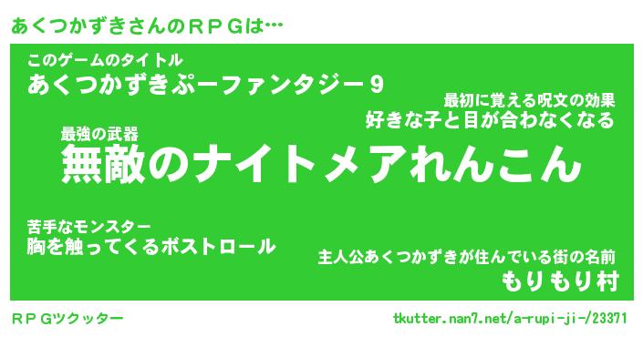 | 男性向けラノベタイトル風あだ名 | 『アクツカズキアートオンライン』 |