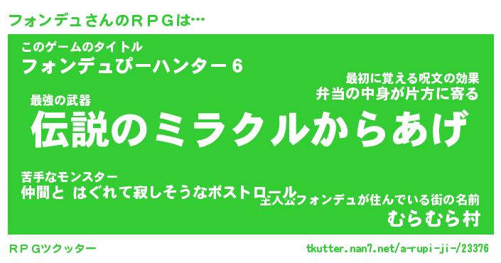 | 料理風あだ名 | 『節約★フォンデュと油揚げの玉子丼』 |