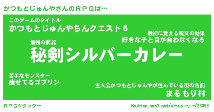 | 男性向けラノベタイトル風あだ名 | 『かつもとじゅんやの憂鬱』 |