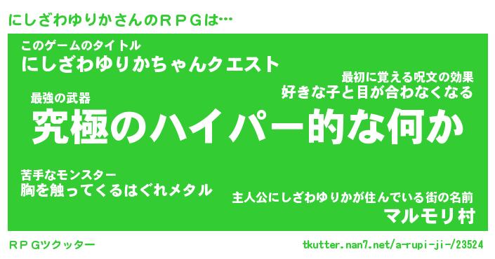 | 男性向けラノベタイトル風あだ名 | 『ニシザワユリカアートオンライン』 |