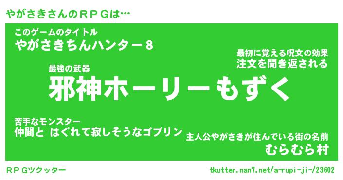 | ポケモン風あだ名 | 『ヤガチュウ』『ヤガサダネ』 |
