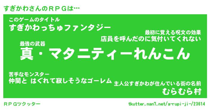 | 胡散臭い通販商品みたいなあだ名 | 『億万長者になれる霊験あらたかなお札…その名も「すぎかわ」』 |