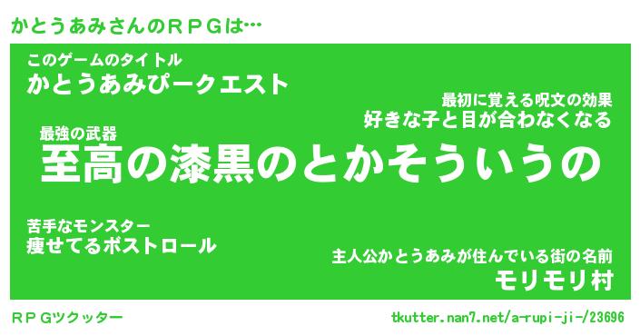 | ファンタジー風あだ名 | 『カトフェル』『エターナルカトウアミー』 |