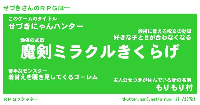 | 男性向けラノベタイトル風あだ名 | 『せづきの憂鬱』 |