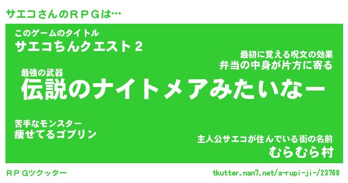 | 胡散臭い通販商品みたいなあだ名 | 『モテモテ間違いなし霊験あらたかなお札…その名も「サエコ」』 |