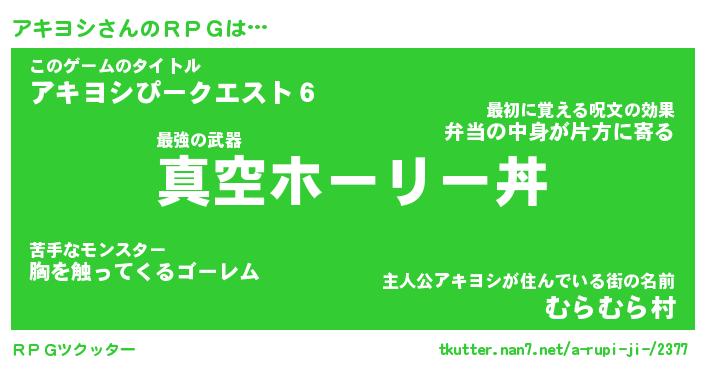 | 男性向けラノベタイトル風あだ名 | 『アキヨシアートオンライン』 |