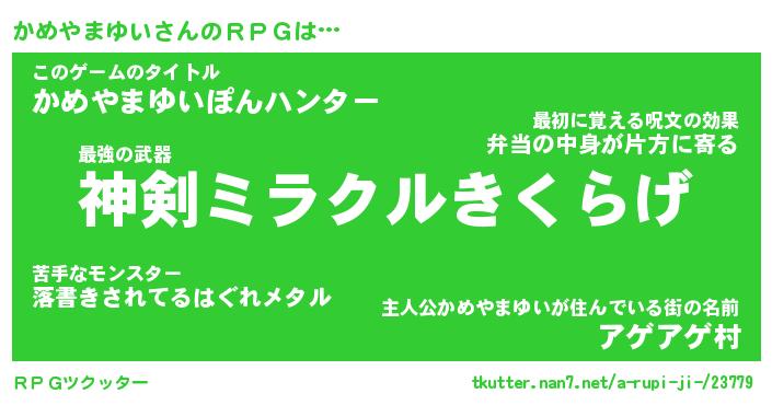 | ヒーロー風カッコイイあだ名 | 『スーパーカメヤマユイ』『魔戒騎士カメ』 |