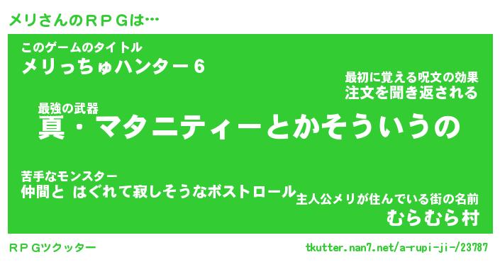 | 伝説のあだ名 | 『封印されしスナイパーメリ』 |