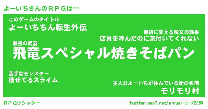 | 胡散臭い通販商品みたいなあだ名 | 『億万長者になれるブレスレット…その名も「よーいち」』 |