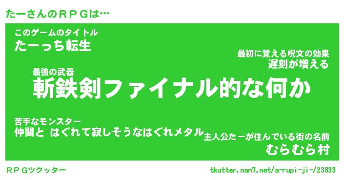 | 男性向けラノベタイトル風あだ名 | 『たーの憂鬱』 |