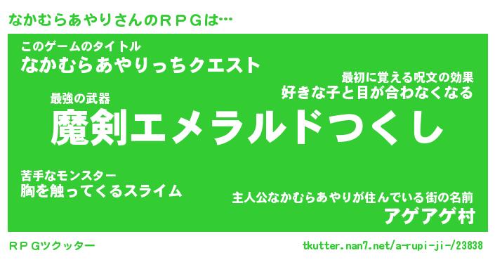 | 伝説のあだ名 | 『伝説のスナイパーなかむらあやり』 |