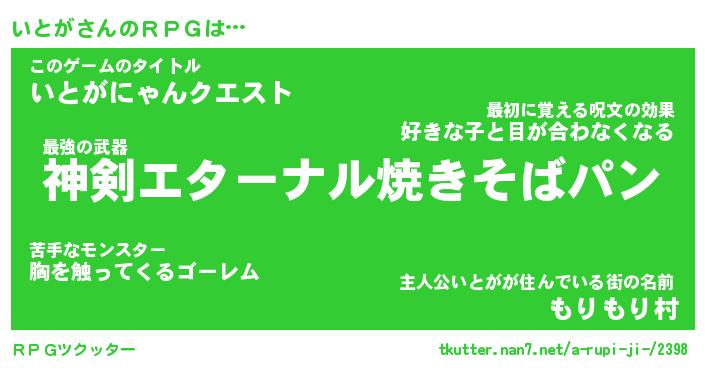 | ファンタジー風あだ名 | 『イトフェル』『エターナルイトガー』 |
