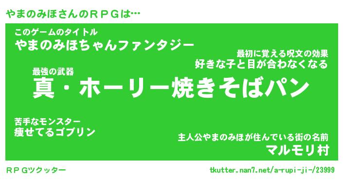 | 胡散臭い通販商品みたいなあだ名 | 『億万長者になれる水晶球…その名も「やまのみほ」』 |