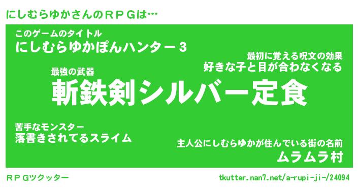 | ヒーロー風カッコイイあだ名 | 『スーパーニシムラユカ』『魔戒騎士ニシ』 |