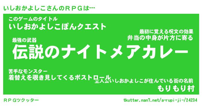 | 胡散臭い通販商品みたいなあだ名 | 『モテモテ間違いなし霊験あらたかなお札…その名も「いしおかよしこ」』 |
