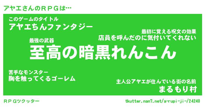 | ファンタジー風あだ名 | 『アヤフェル』『エターナルアヤエー』 |