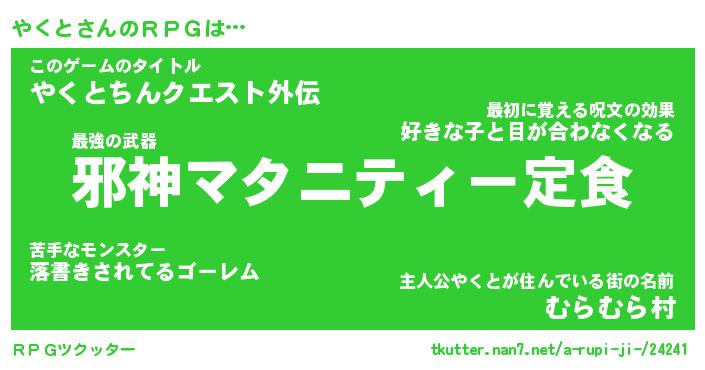 | 意味不明あだ名 | 『ペロリンやくと』『やくとフォーエバー』 |
