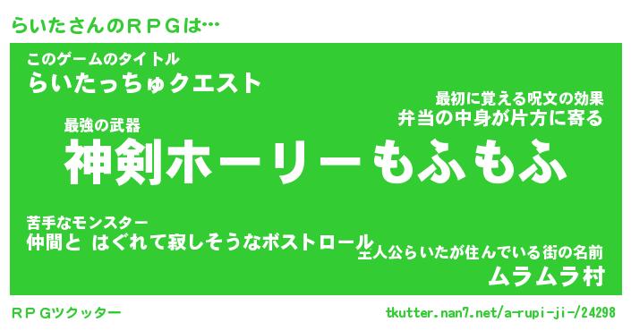 | 男性向けラノベタイトル風あだ名 | 『らいたの憂鬱』 |