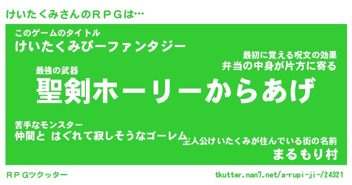 | 胡散臭い通販商品みたいなあだ名 | 『必ず成功する水晶球…その名も「けいたくみ」』 |
