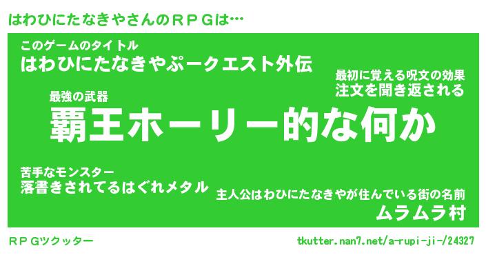 | 胡散臭い通販商品みたいなあだ名 | 『億万長者になれる水晶球…その名も「はわひにたなきや」』 |