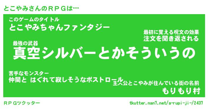 | ファンタジー風あだ名 | 『トコフェル』『エターナルトコヤミー』 |