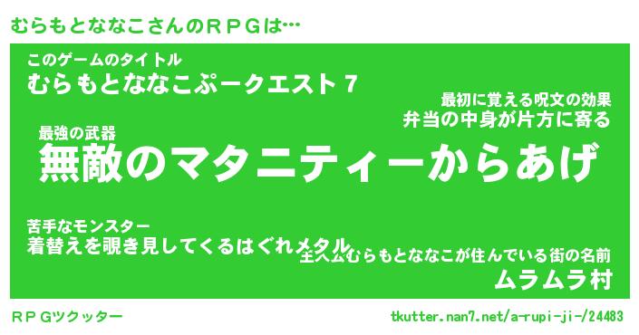 | ツイッター | むらもとななこさんのツイッターID『dendenmushi_nyan』 |
