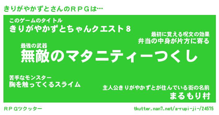 | 男性向けラノベタイトル風あだ名 | 『キリガヤカズトアートオンライン』 |