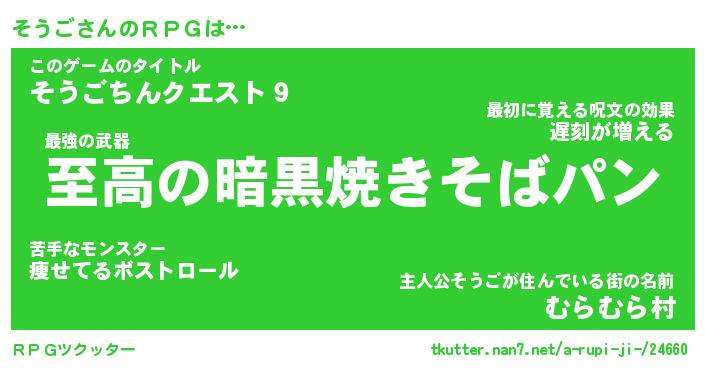 | 男性向けラノベタイトル風あだ名 | 『ソウゴアートオンライン』 |