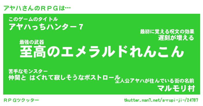 | 男性向けラノベタイトル風あだ名 | 『アヤハアートオンライン』 |