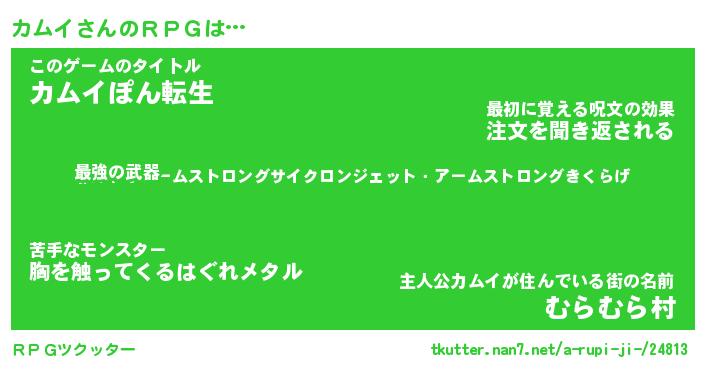 | 男性向けラノベタイトル風あだ名 | 『カムイアートオンライン』 |