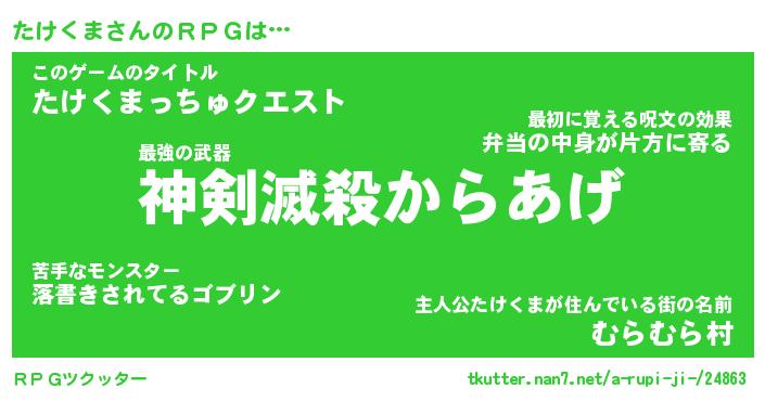 | ファンタジー風あだ名 | 『タケフェル』『エターナルタケクマー』 |