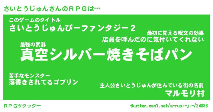 | 伝説のあだ名 | 『封印されし傭兵さいとうじゅん』 |