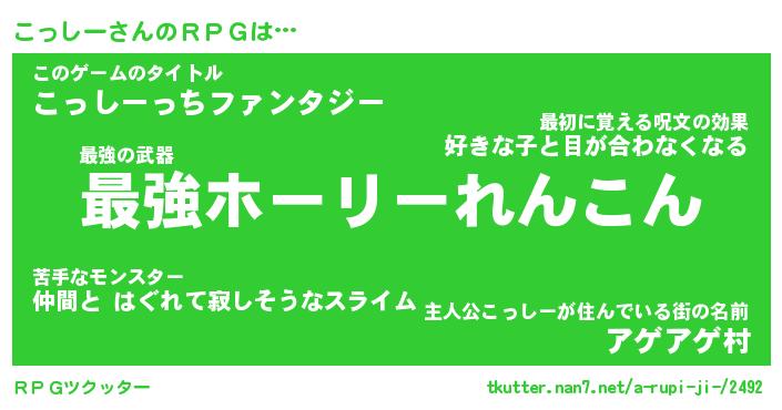 | ファンタジー風あだ名 | 『コッフェル』『エターナルコッシーー』 |