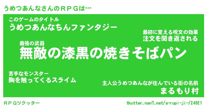 | 男性向けラノベタイトル風あだ名 | 『ウメツアンナアートオンライン』 |