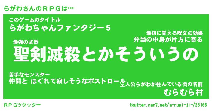 | ヒーロー風カッコイイあだ名 | 『スーパーラガワ』『ウルトラらがわマン』 |