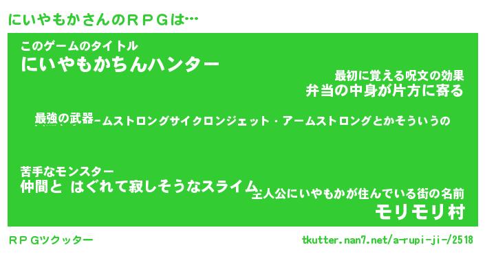 | ファンタジー風あだ名 | 『ニイフェル』『エターナルニイヤモカー』 |