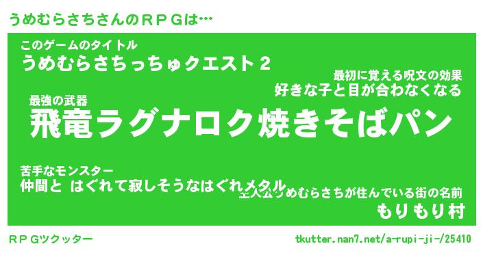 | ヒーロー風カッコイイあだ名 | 『スーパーウメムラサチ』『幻影騎士ウメ』 |