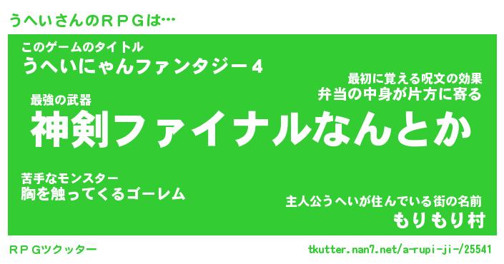 | 男性向けラノベタイトル風あだ名 | 『うへいの憂鬱』 |