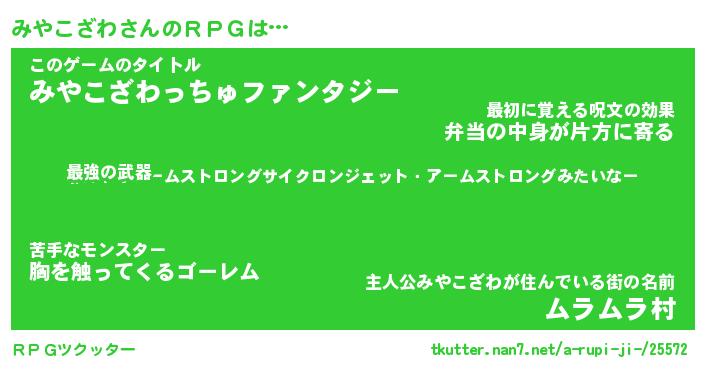 | ファンタジー風あだ名 | 『ミヤフェル』『エターナルミヤコザワー』 |