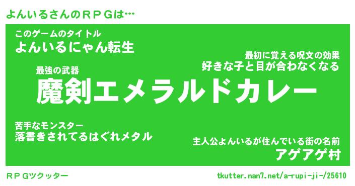 | 男性向けラノベタイトル風あだ名 | 『よんいるの憂鬱』 |