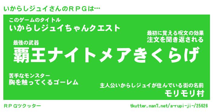 | 伝説のあだ名 | 『封印されしスナイパーいからしジュイ』 |