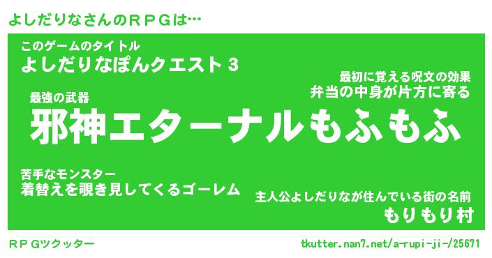 | ポケモン風あだ名 | 『ヨシチュウ』『ヨシダダネ』 |