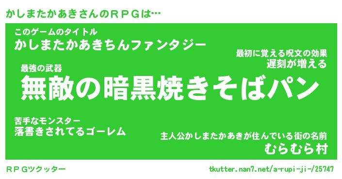 | 伝説のあだ名 | 『封印されし傭兵かしまたかあき』 |