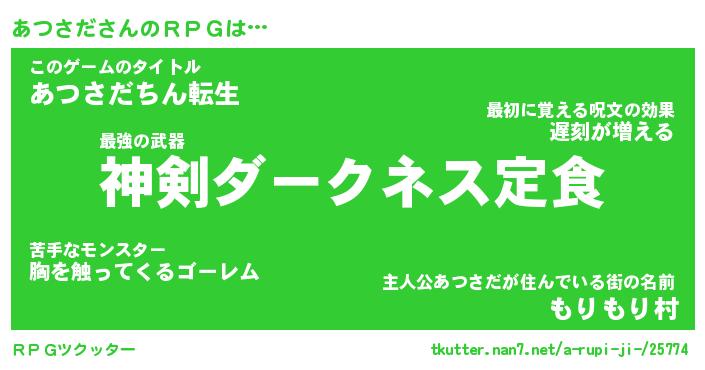 意味不明あだ名 | 『ペロリンあつさだ』『永久保存あつさだ』 |