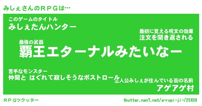 | 伝説のあだ名 | 『封印されし傭兵みしぇ』 |